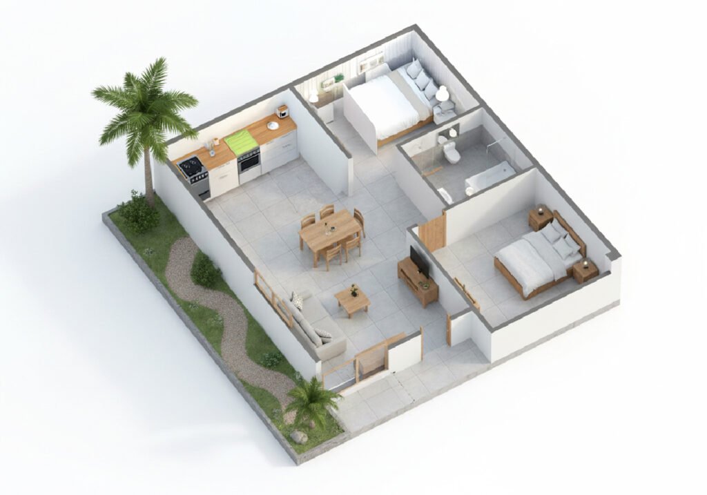 Esta versión del modelo Americana presenta una distribución diferente que aporta más comodidad en el uso de los ambientes. Mantiene el estilo clásico y cálido de la línea, con espacios bien organizados y una sensación de amplitud que se disfruta en el día a día. Es una opción ideal para quienes buscan una casa funcional, práctica y lista para vivir.