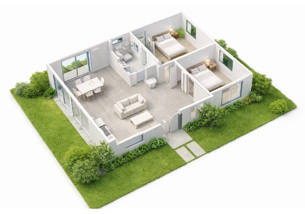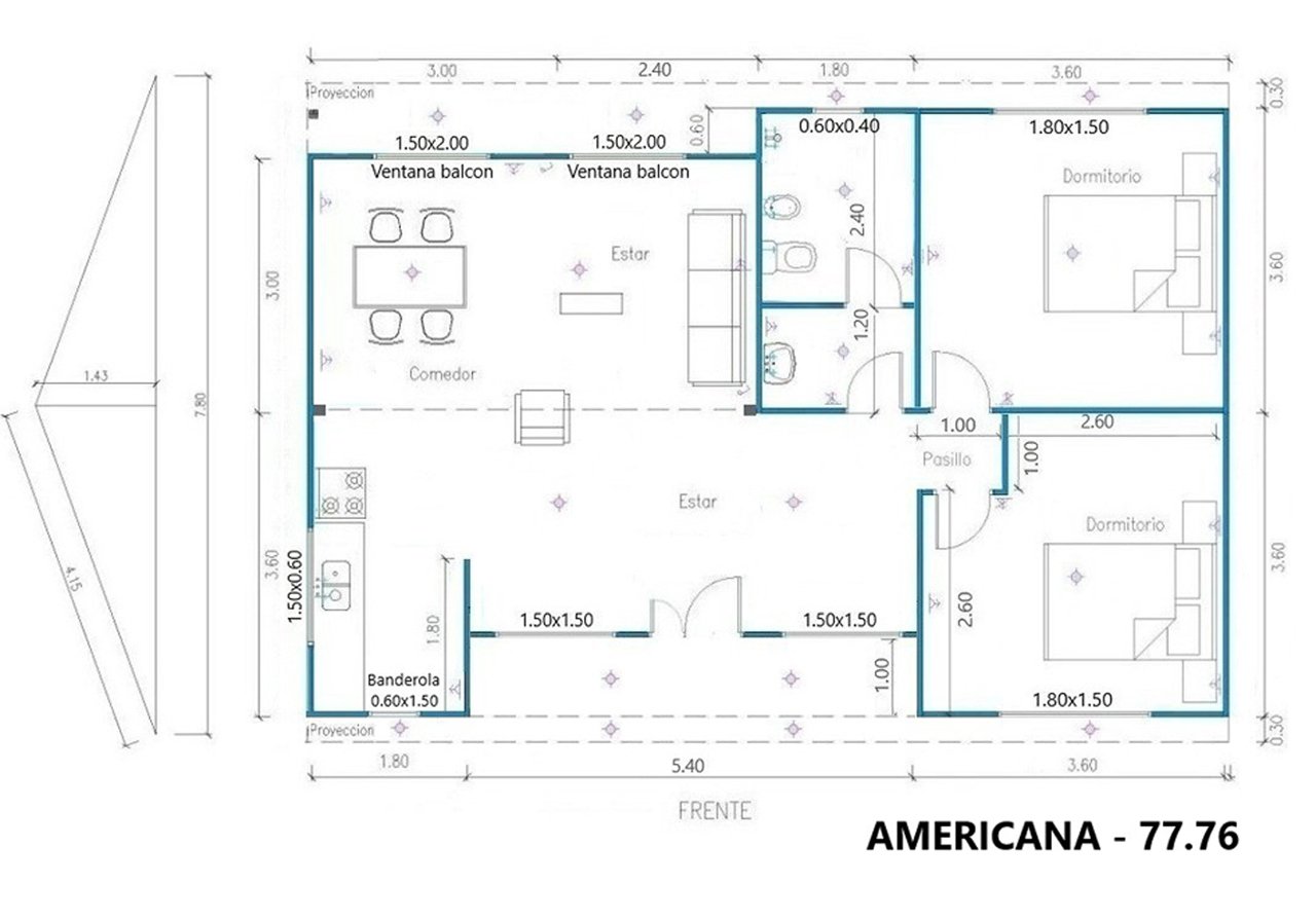Esta versión del modelo Americana ofrece una mayor sensación de amplitud, con una sala de estar generosa que invita a compartir y disfrutar sin apuros. La galería semicubierta al frente suma un espacio extra para relajarse al aire libre, manteniendo la calidez y el espíritu práctico de la línea. Una casa pensada para quienes buscan más espacio, sin perder funcionalidad ni comodidad.