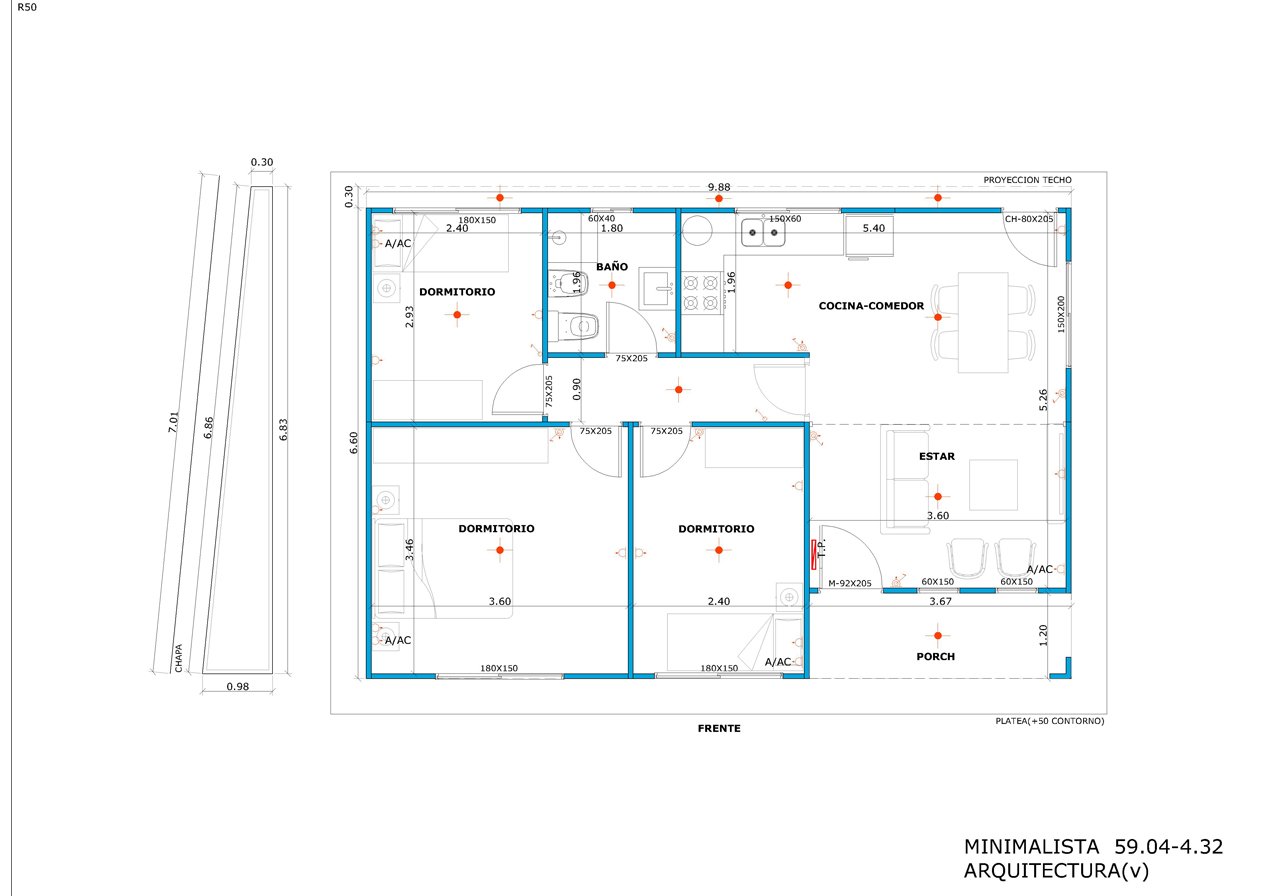 Este modelo amplía la propuesta minimalista sumando más ambientes y mayor versatilidad en su distribución. Con cuatro ambientes y tres habitaciones, es una vivienda pensada para quienes necesitan más espacio sin perder orden ni funcionalidad.
