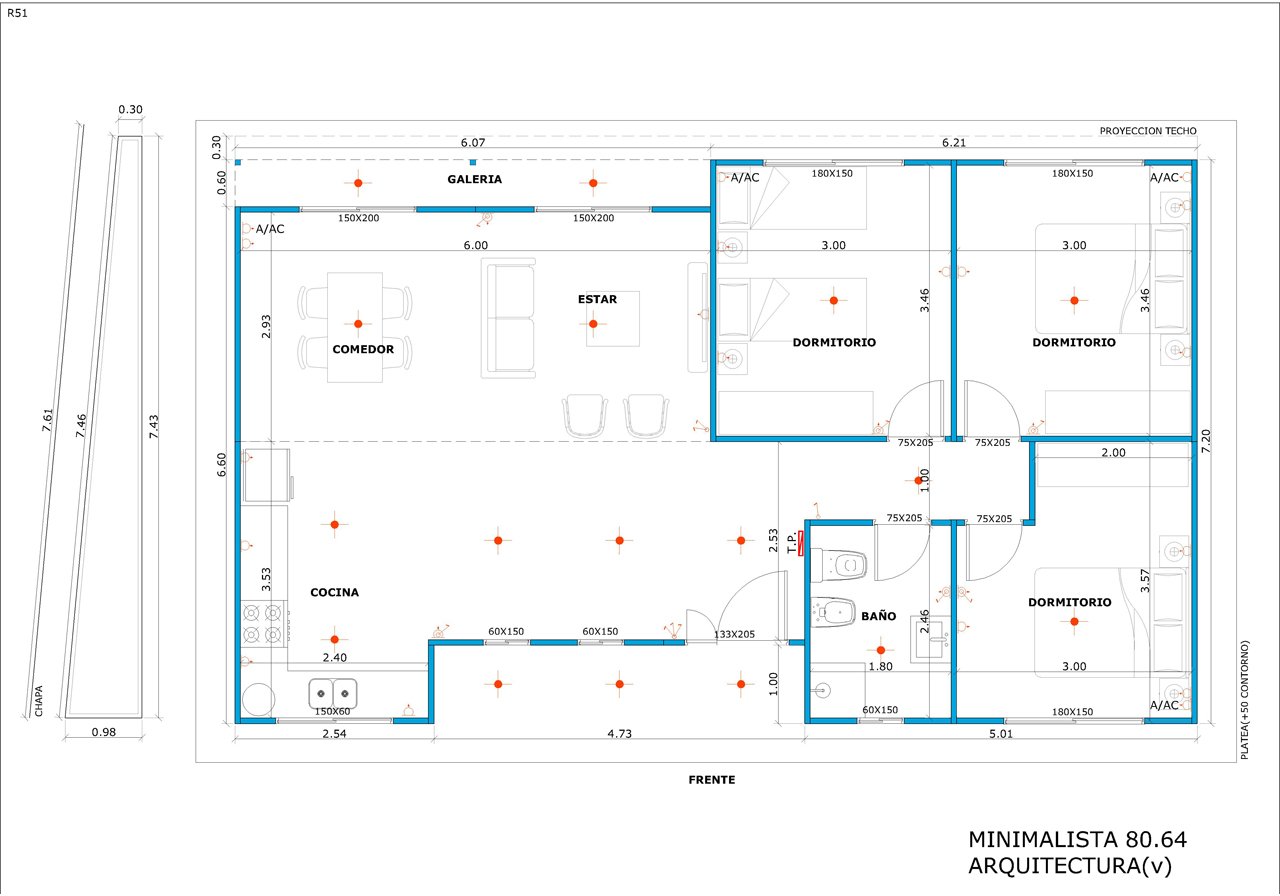 Este es el modelo más amplio de la línea Minimalista, pensado para quienes buscan mayor comodidad sin perder la simpleza del diseño. Con cuatro ambientes y tres habitaciones, ofrece una distribución equilibrada y espaciosa, ideal para una vida familiar más holgada.